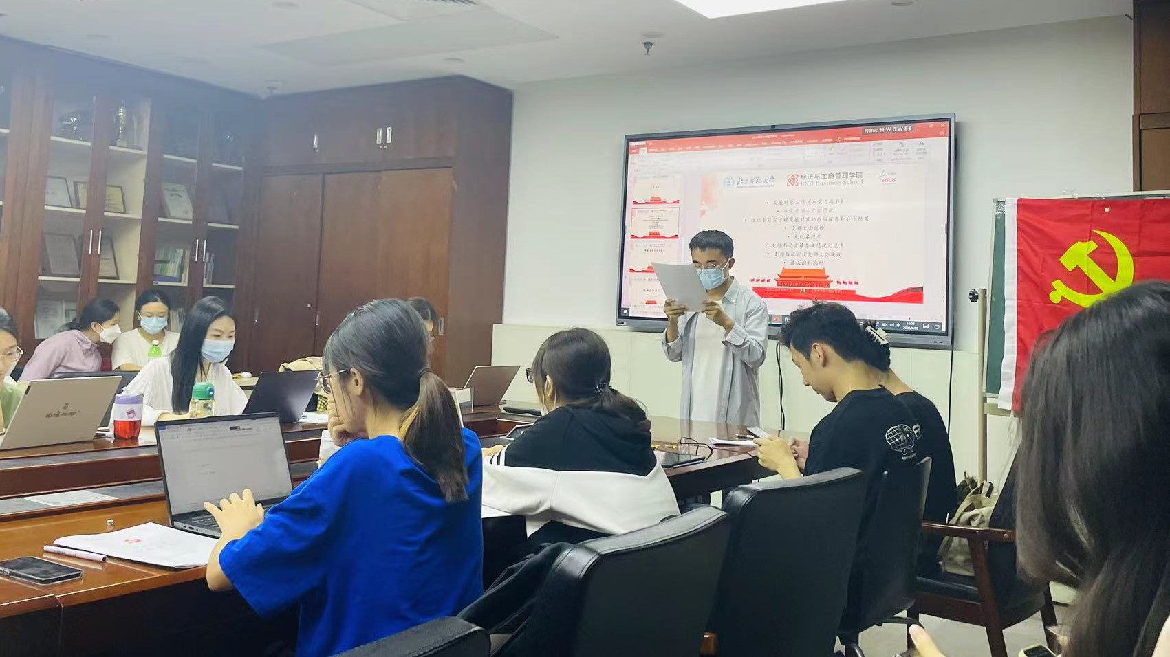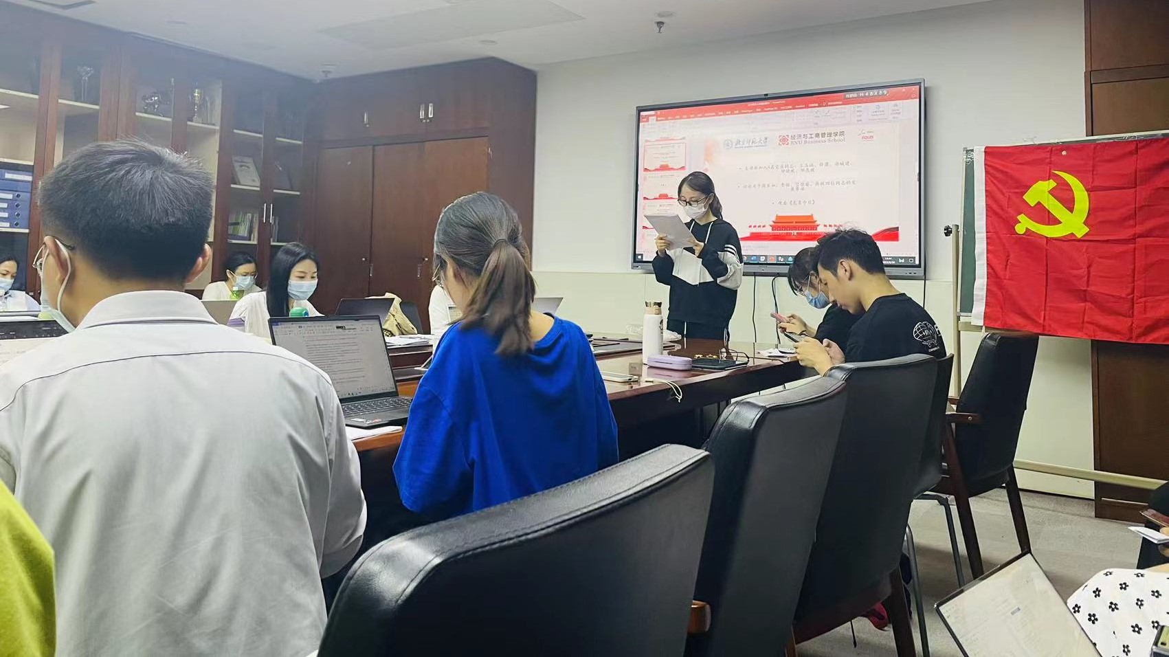 2022年9月30日,98858vip威尼斯下载国际贸易第一党支部于后主楼1722会议室召开全体党员大会。会议由党支部书记董敏主持,支部28名党员参加会议。